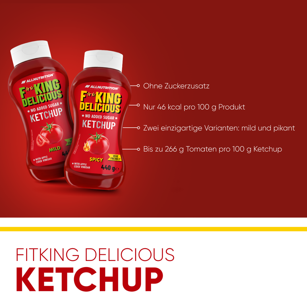 Allnutrition Fitking Delicious Ketchup 440 G Mild – Milder Ketchup ohne Zuckerzusatz. Natürlicher Tomatengeschmack mit Himalaya-Salz.