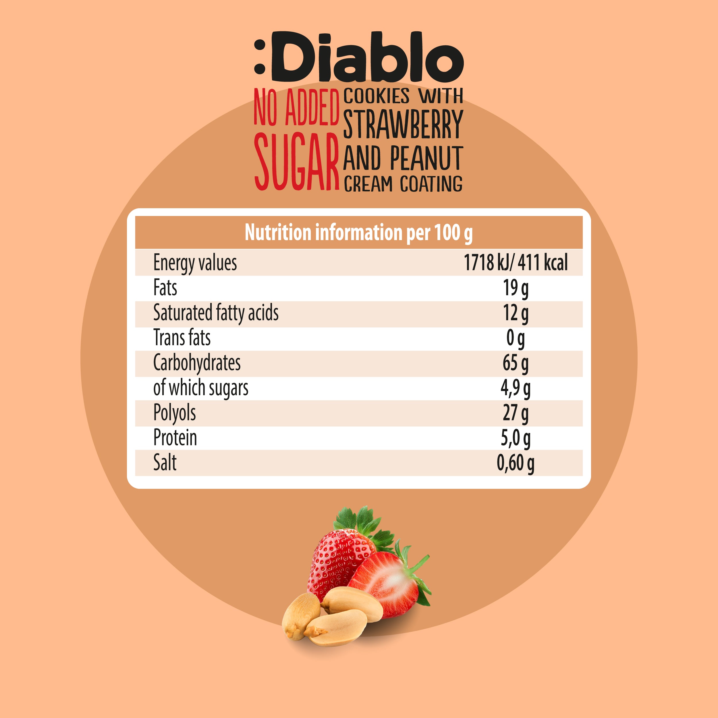 :Diablo No Added Sugar Cookies with Strawberry and Peanut Cream Coating 100g