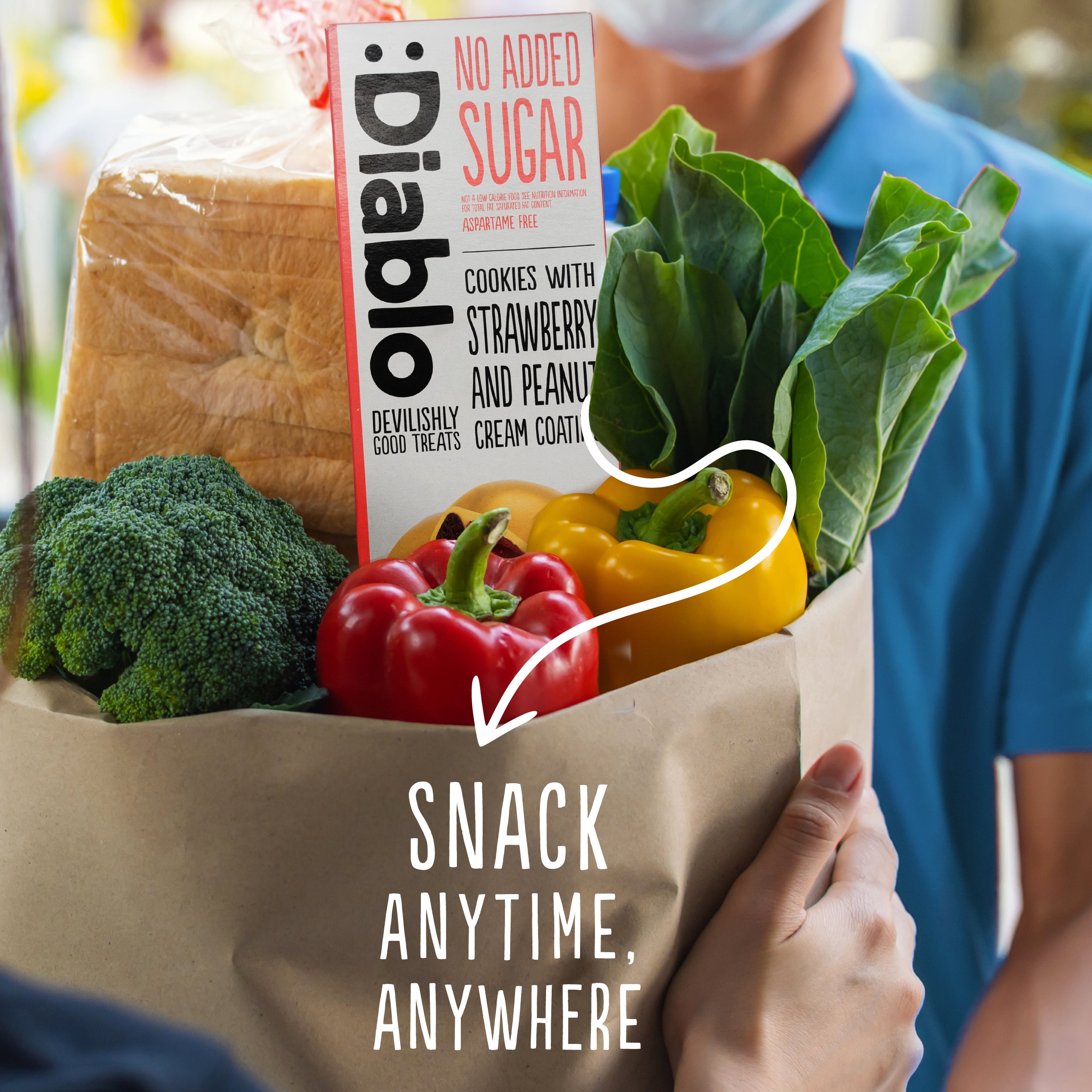 :Diablo No Added Sugar Cookies with Strawberry and Peanut Cream Coating sind leckere Kakao-Kekse mit einer cremig fruchtigen Erdbeerfüllung, überzogen mit einer knackigen Erdnusscreme. Die Cookies sind ausschließlich mit Süßungsmittel (Maltit) gesüßt und frei von zusätzlichem Zuckerzusatz.