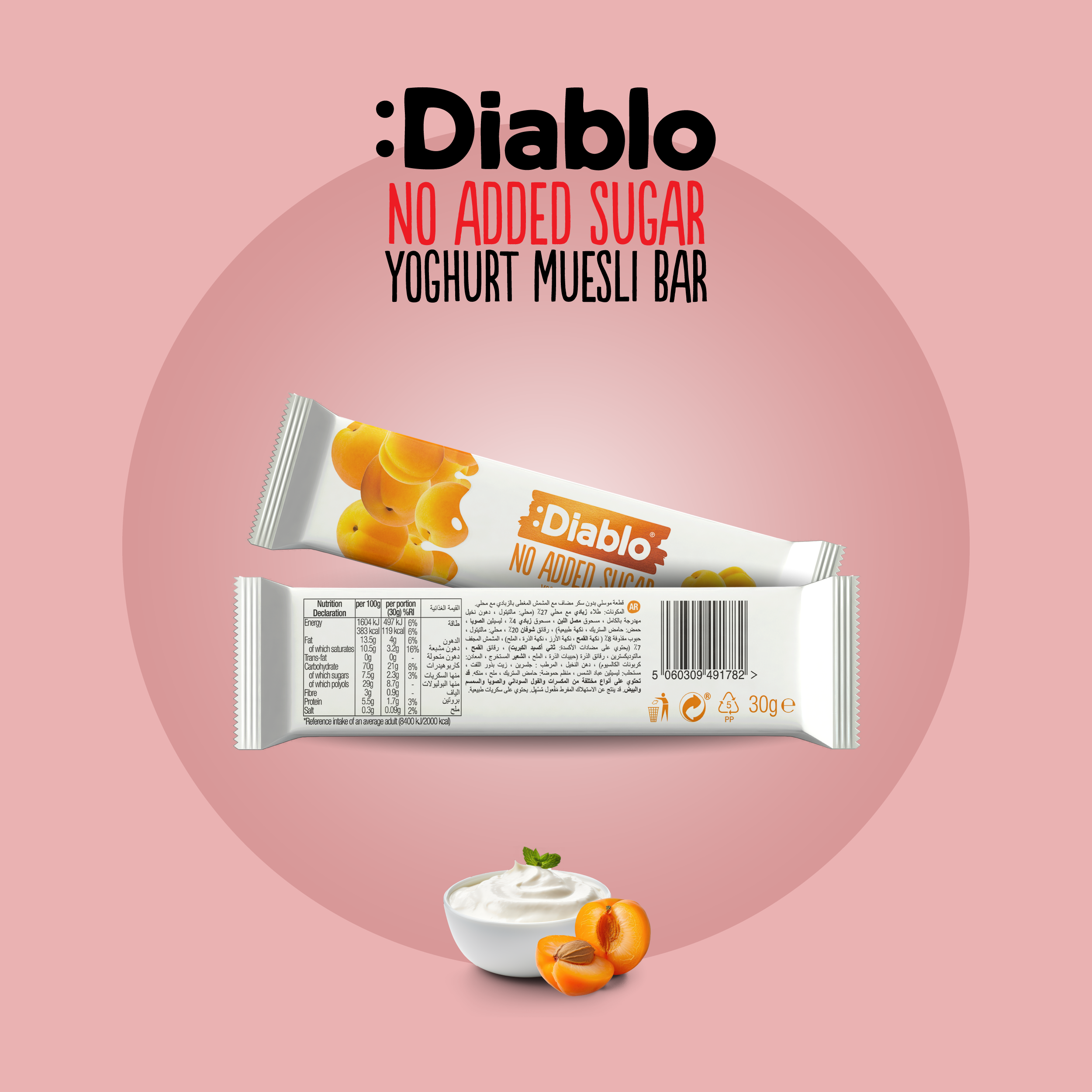 :Diablo No Added Sugar Yoghurt Apricot Muesli Bar 30g